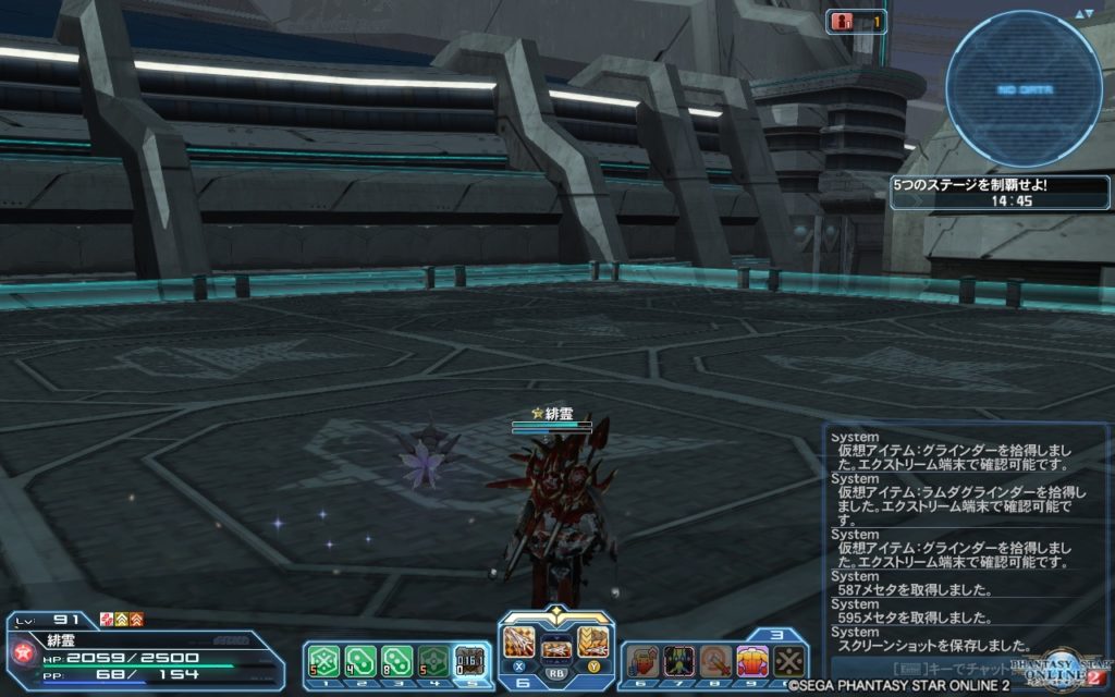 ステージ2はウォルガーダが3体と、アラトロン・フェムトが1体です。アラトロン・フェムトの攻撃で状態異常になったウォルガーダを倒すのがステージオーダーです。今回は3分強かかりました。武器はディムDセイバーを使いました。ディムDセイバーが強化MAXまで行っていないからなのか、ここも時間がかかりがちです。もう1分以上縮めたいです。ステージオーダーを気にせず、とにかく攻撃して早く敵を倒す事を考えて攻撃してました。